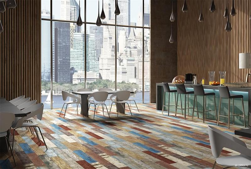 Керамогранит Coleur – это оригинальная имитация прокрашенных древесных планок, предназначенных для облицовки пола в помещениях общественного и жилого назначения. Коллекция плитки испанского производителя Bestile демонстрирует богатую палитру цветов. Всего серия насчитывает 16 вариативных решений, каждое из которых отличается оттенком и узором. Един и универсален формат модулей – 15х90 см. Прямоугольная форма позволяет найти наиболее подходящий способ укладки – кирпичная, «кабанчик» и т.д.