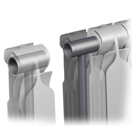 биметаллических секционных радиаторов отопления является каркас из стали, покрытой специальным алюминиевым сплавом. Это обеспечивает высочайшую прочность изделия и его долговечность.