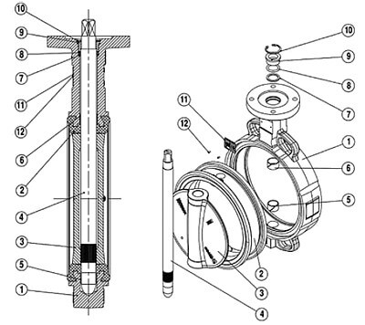 • верхний и нижний антифрикционные подшипники позволяют увеличить срок службы затвора и снизить крутящие моменты;