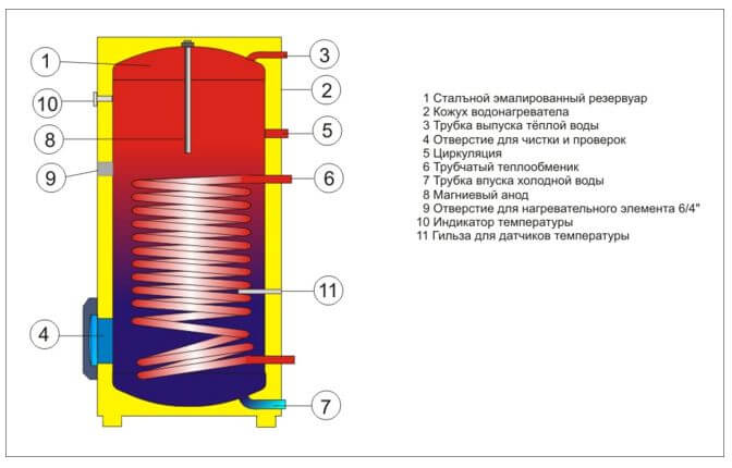 отопительного котла. По своей конструкции этот бойлер водонагреватель предназначается для напольной установки, что будет большим преимуществом для установки их в помещениях маленьких площадей, так