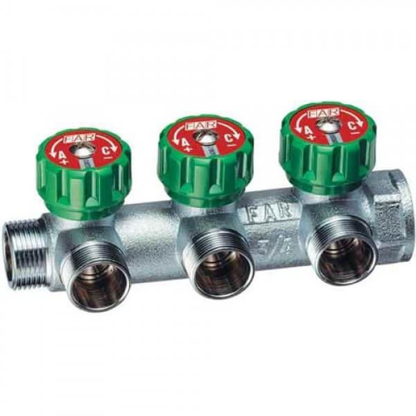 Far Регулирующий коллектор 1" (ВР-НР) с 3 отв. 1/2" НР. Трубная резьба евроконус