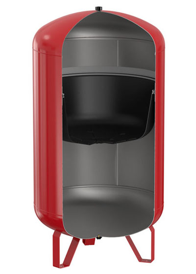Рост температуры в системе ведет к расширению воды. "Вода расширения" временно направляется в расширительный бак, что позволяет поддерживать необходимое рабочее давление. Баки заполнены азотом