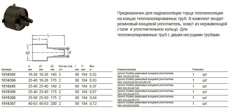 При установке уплотнителя Quattro 200 на трубу Uponor Quattro 2x40/28 +18/200 для достижения плотного обжима подающей трубы с диаметром 18 мм патрубком резинового уплотнителя необходимо применять обжимной хомут.