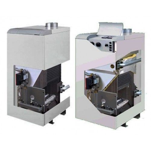 внешним бойлерам, имеют теплообменник из чугуна двухходового устройства, открытую камеру. Оборудование характеризуется КПД до 90%.